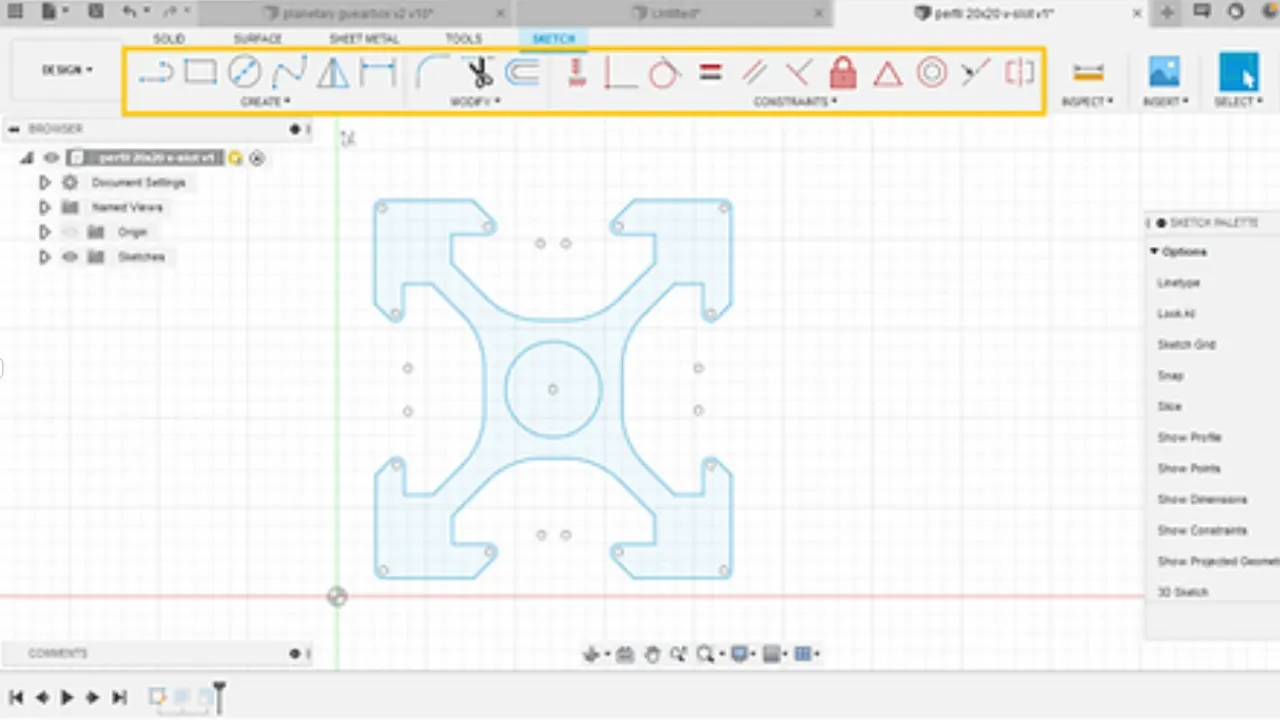 O Sketch é super importante na hora de desenhar as peças. É nele que ficam praticamente todas as medidas das suas peças, sem dúvidas é importante conhecer todas as ferramentas da parte 2D antes de continuar com os estudos em 3D.