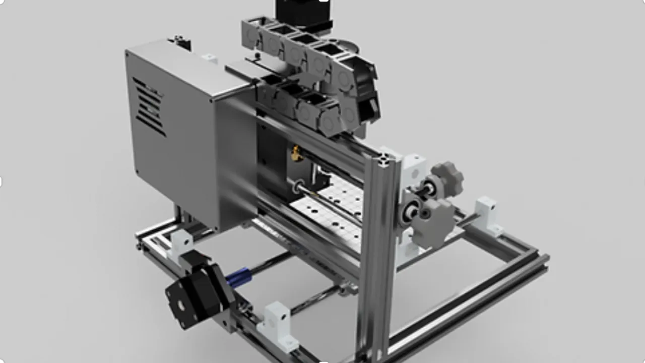 Durante todo o curso nós praticamos o uso de todas as ferramentas em pequenos projetos com o objetivo de compreende-las. Mas no final do curso depois de ter aprendido todas elas chegou a hora de praticar de verdade. Nós desenhamos essa máquina do zero como forma de praticar tudo que foi aprendido. (Sim. Eu disponibilizo o arquivo da máquina para você abrir no seu Fusion e analisar cada cantinho dela).