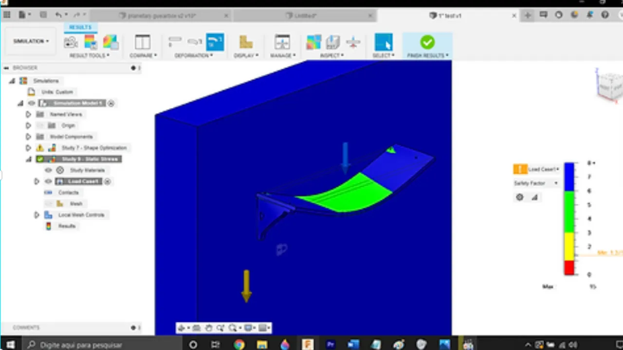 A aba de simulação stress é usada para simular se uma estrutura está adequada para suportar a força nela aplicada. É possivel também otimizar peças para reduzir custos de fabricação.